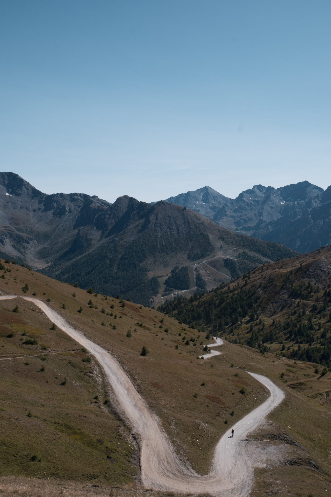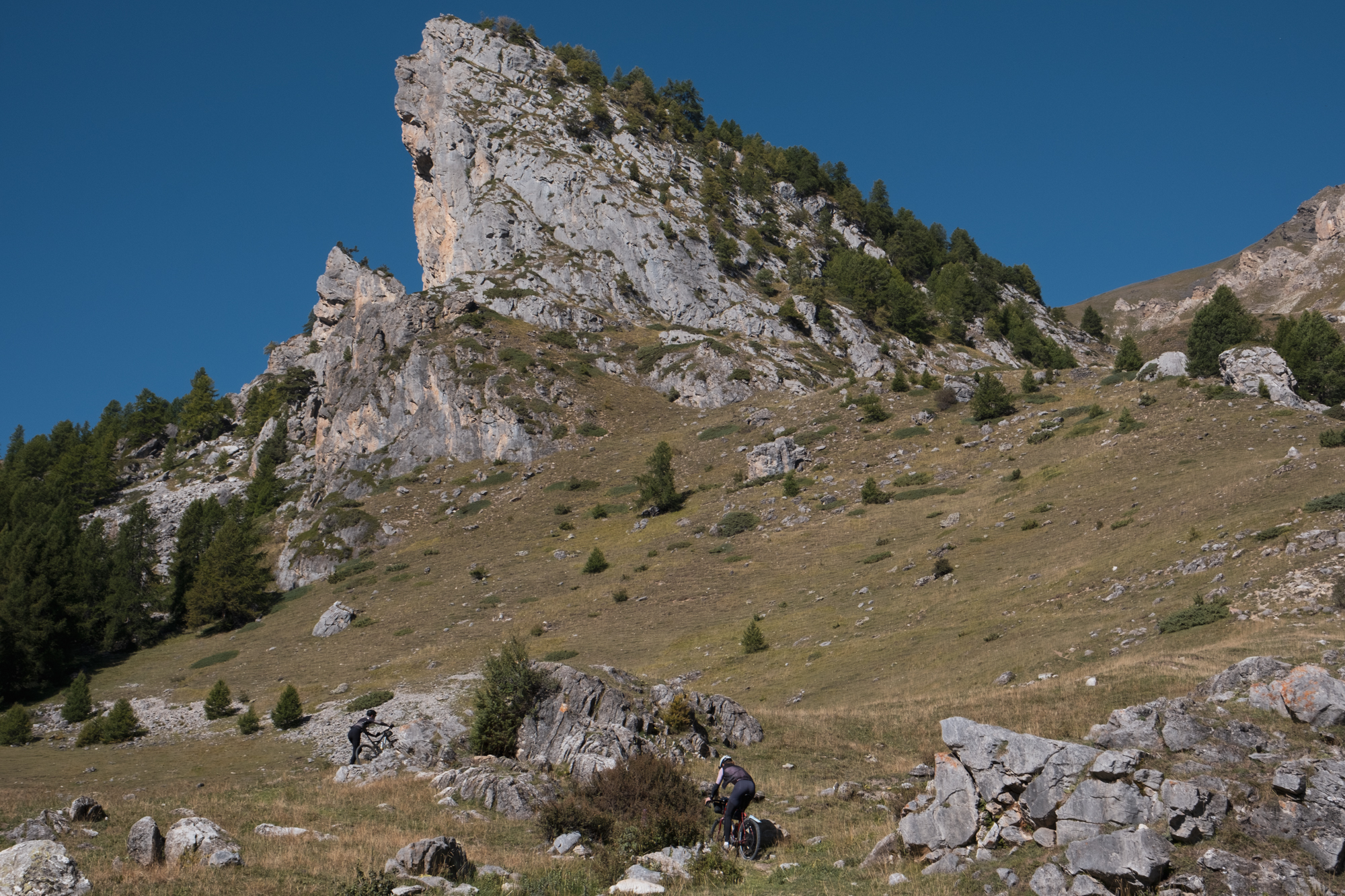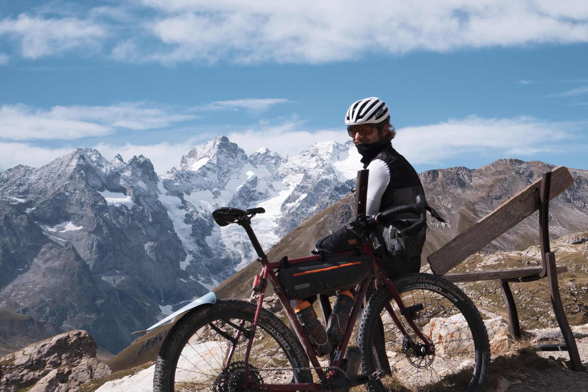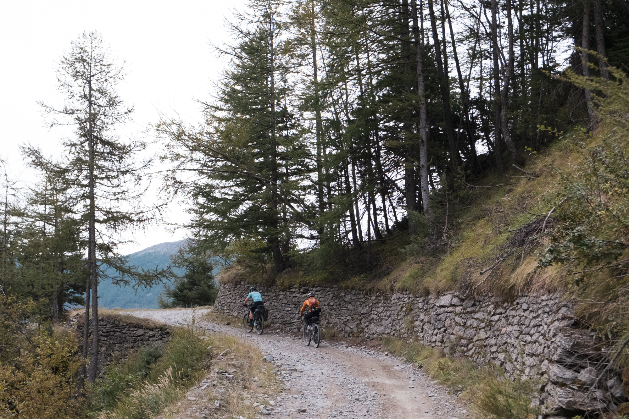 We were full of adrenaline at the top of the infamous mountain. It was all for us as no cars could access the road to the top, and at that moment no other cyclists were challenging the adverse weather. Our Hammerhead was displaying an air temperature of -4°C, and we could barely stay upright given the strong gusts of wind. The descent to Plan Lachat was short but extremely cold, so the off-road climb into the Haute Vallée de la Clarée was helpful to warm up again.