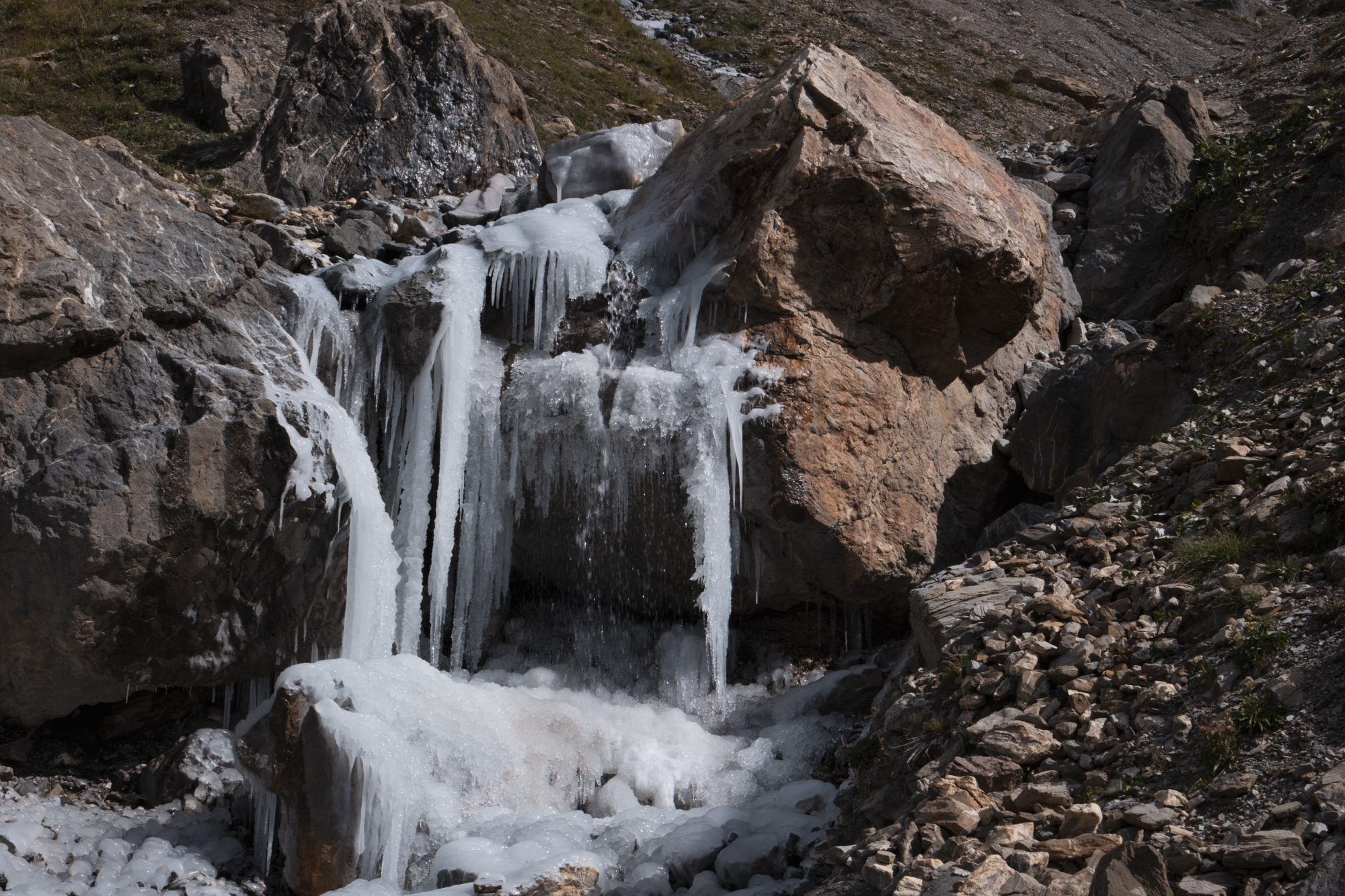 The sky was clear, so we tackled the original plan hoping that the sun would melt the remaining ice on the trails. The default approach to the Galibier from Briancon is via the main road, but thanks to Le Pilgrimage we discovered an alternative path, mainly gravel, parallel to it.
