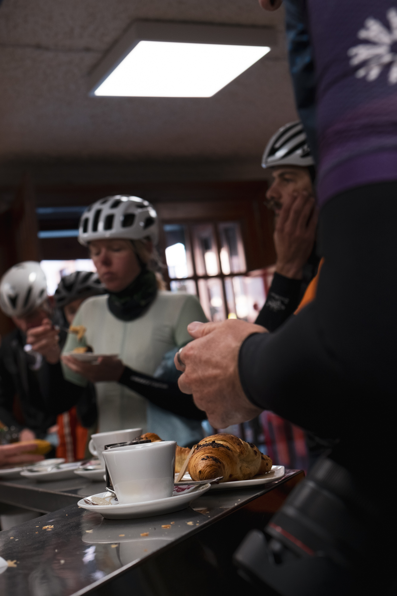 We caught the first sunrays on our way to the border. A quiet gravel path led us to Claviere, where we ordered a cappuccino because that is the first thing everyone should do when crossing to Italy. A regrouping took place, and Cyril went ahead saying “I don’t want to miss this part”, so we were expecting something interesting up next.