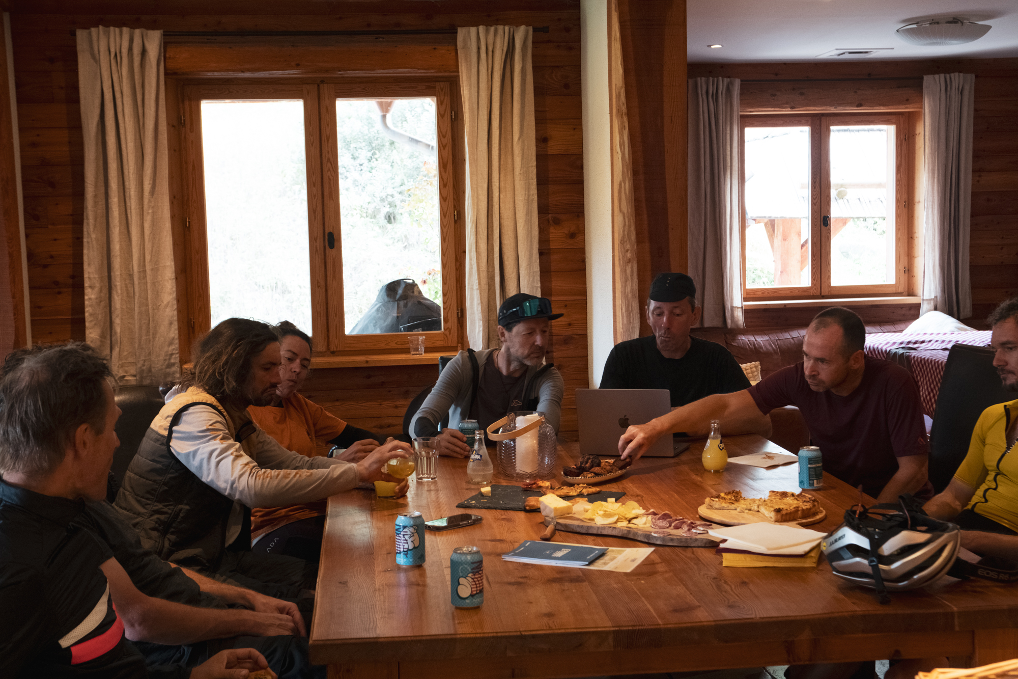 The stages were self-supported, but as soon as we arrived back at Chalet AlpeLune, we were treated like queens and kings. We all had a serving of pasta waiting for us, and those arriving at a reasonable time could enjoy the hot tub and clean the bike with all the tools at our disposal before dinner. We gathered every evening at 19:30 in the dining room to devour what chef Anne Pekelharing had prepared for us, share the stories of the day, and prepare for what was coming the following day.