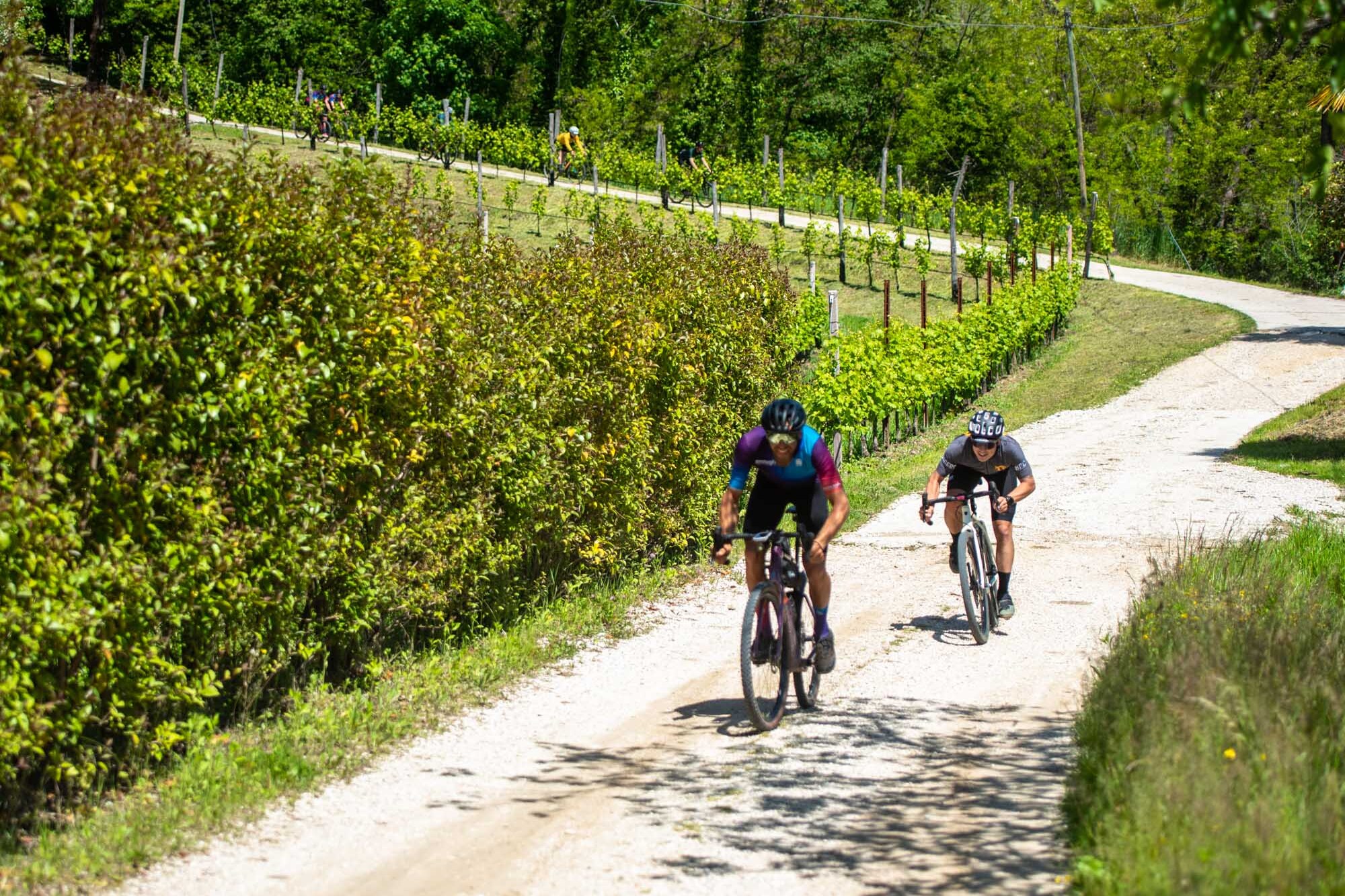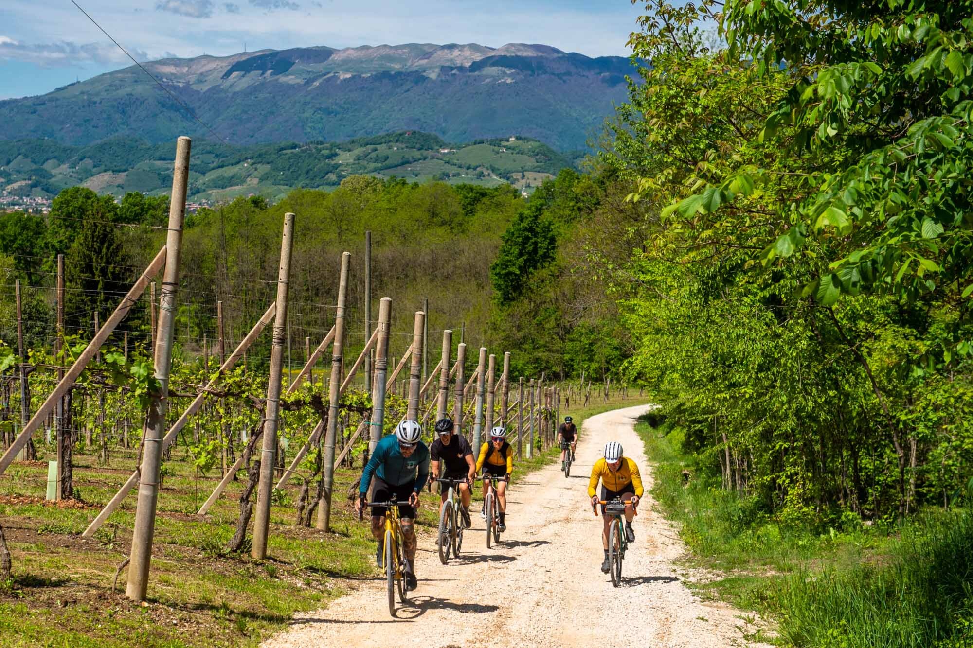 From shortest to longest, the first track, “Via dei castelli”, will allow you to enjoy the uniqueness of the territory along 50 km (+700 m) of riding between Susegana and Collagù. As a second option, the 93 km (+1.390 m) route of “Via dei vitigni eroici” will reach Valdobbiadene, the heart of the UNESCO site, along some of the most beautiful roads in the area. The ultimate challenge is the breathtaking “Via dei Laghi”, 120 km (+2.500 m) along lakes, mountains, vineyards, and unexpected views up to the center of Vittorio Veneto.