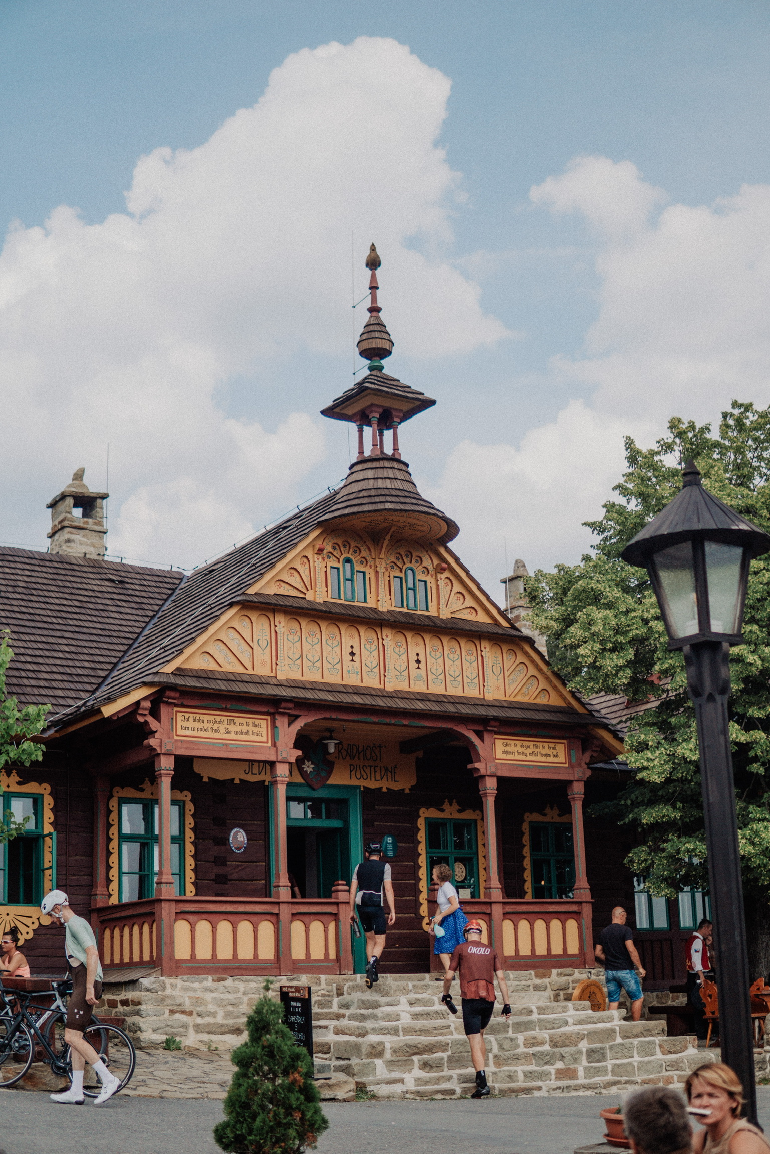 Before you head out, it is suggested to taste the very local cuisine for breakfast, especially the frgal pastry to boost you into the first couple of hills. The second climb of the day, Pustevny, is the toughest one on the route, peaking at 1.010 m of altitude and averaging around 7% with gradients up to 12%. Recently, the climb hosted the finish of this year’s Sazka Tour stage 2. The top of the mountain provides a variety of refreshment options as well as sightseeing of unique Art Nouveau architecture.
