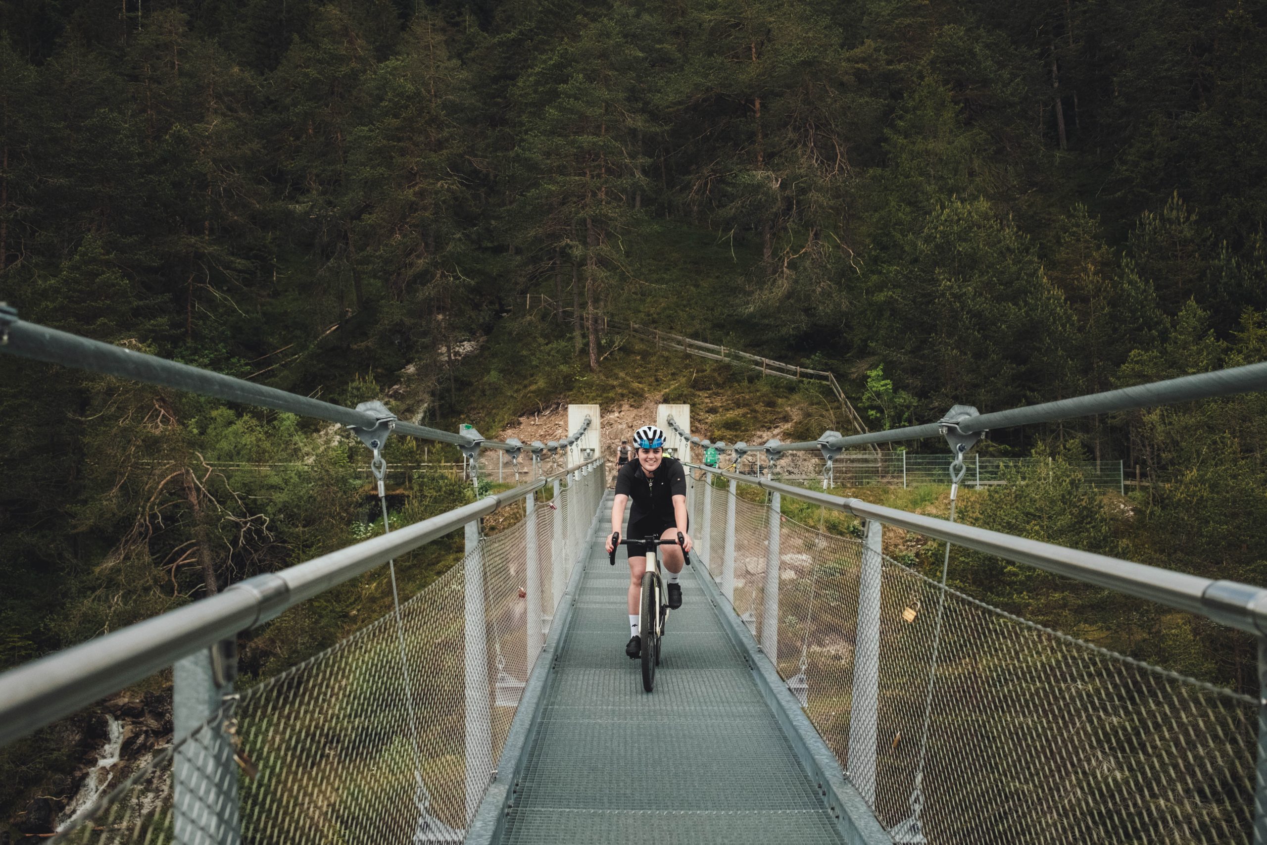 In the first kilometers, we linked a perfect combination of tarmacked and off-road bike paths until we reached the Forchacher Hängebrücke, where we could appreciate the Lechtal to its fullest.