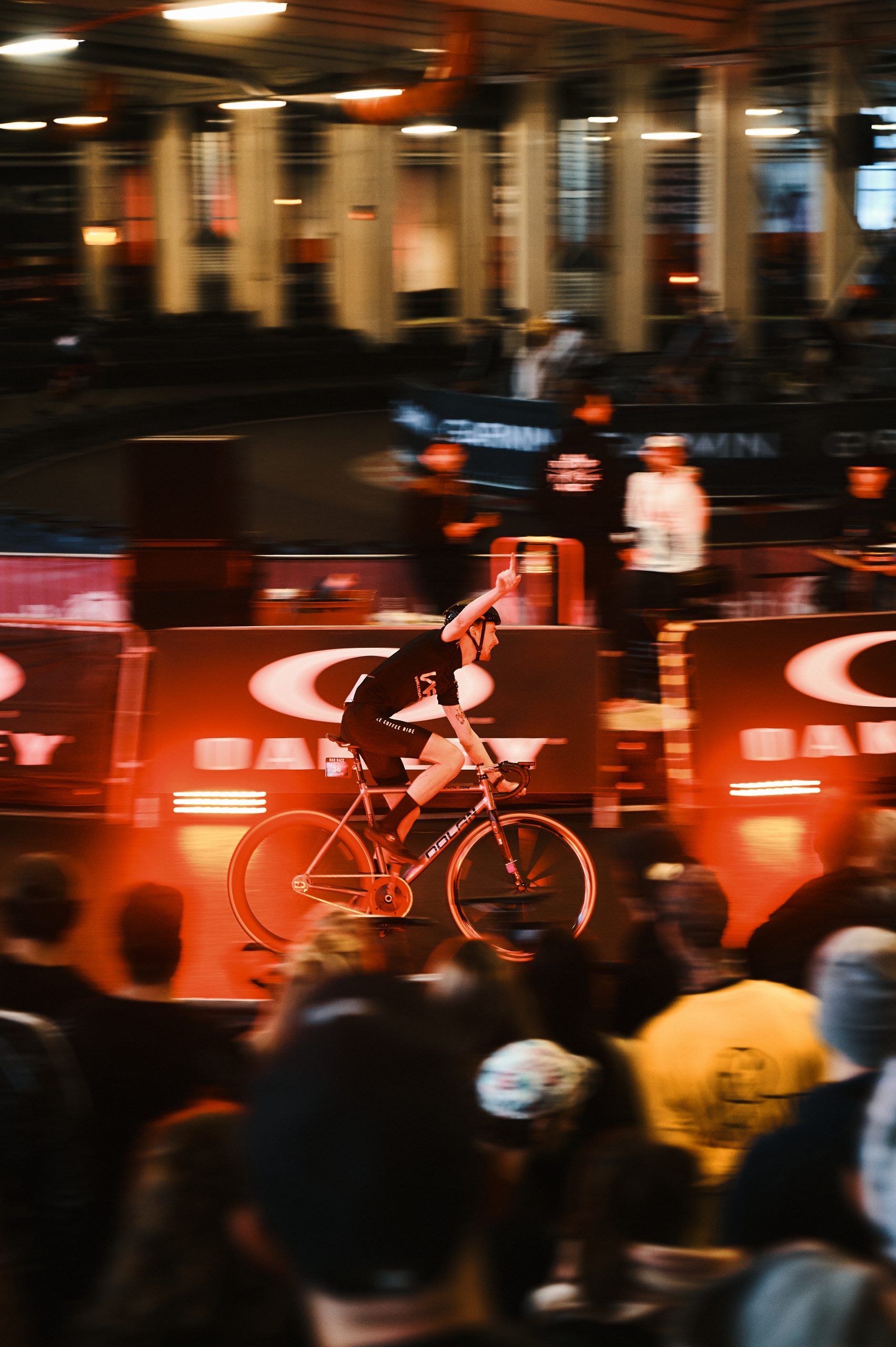 As the rounds progressed, so did the atmosphere in the crowd. Once the women’s race started with their qualifiers heats, Tim Dineen, who made it to the finals later on, turned on her spoke lights on her wheels, pulled-off a wheelie down the back straight while leading the pack in front of the stands and the crowd went cheering.