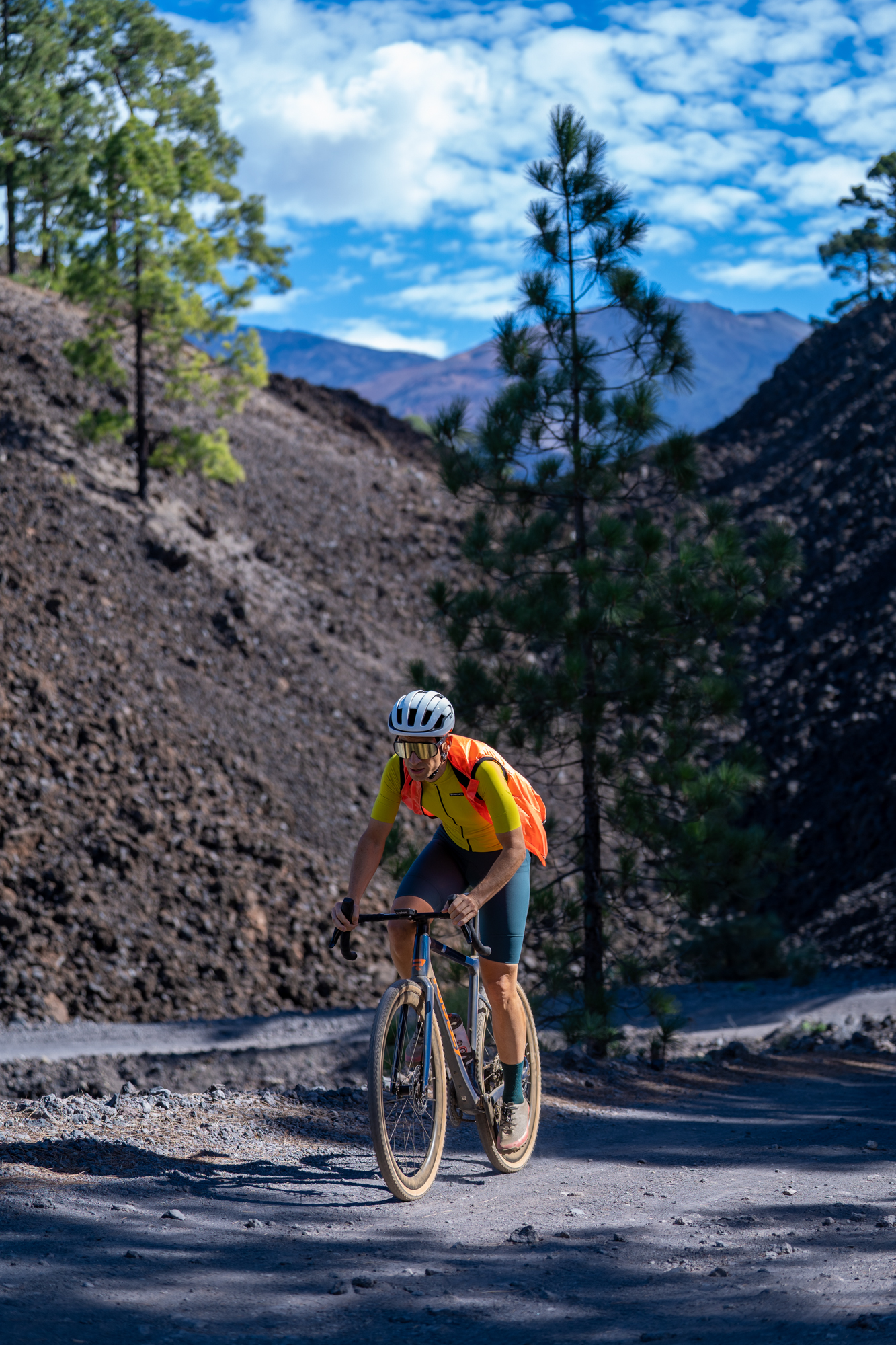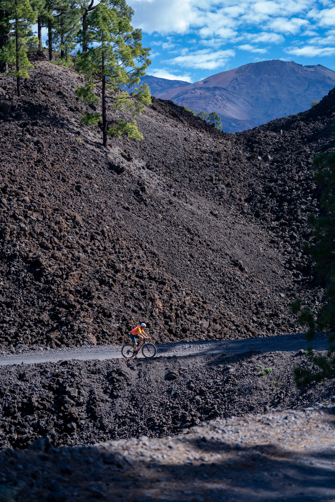We spent the first part of the day riding around Mount Teide, where we found all kinds of surfaces. It is amazing how in just 25 km we were able to come across perfectly settled tracks, gravel, roots, wet areas, leafy forests, mountains of volcanic stone… If the objective was to test the GRIFN in all possible scenarios, by choosing that destination we managed to do it.