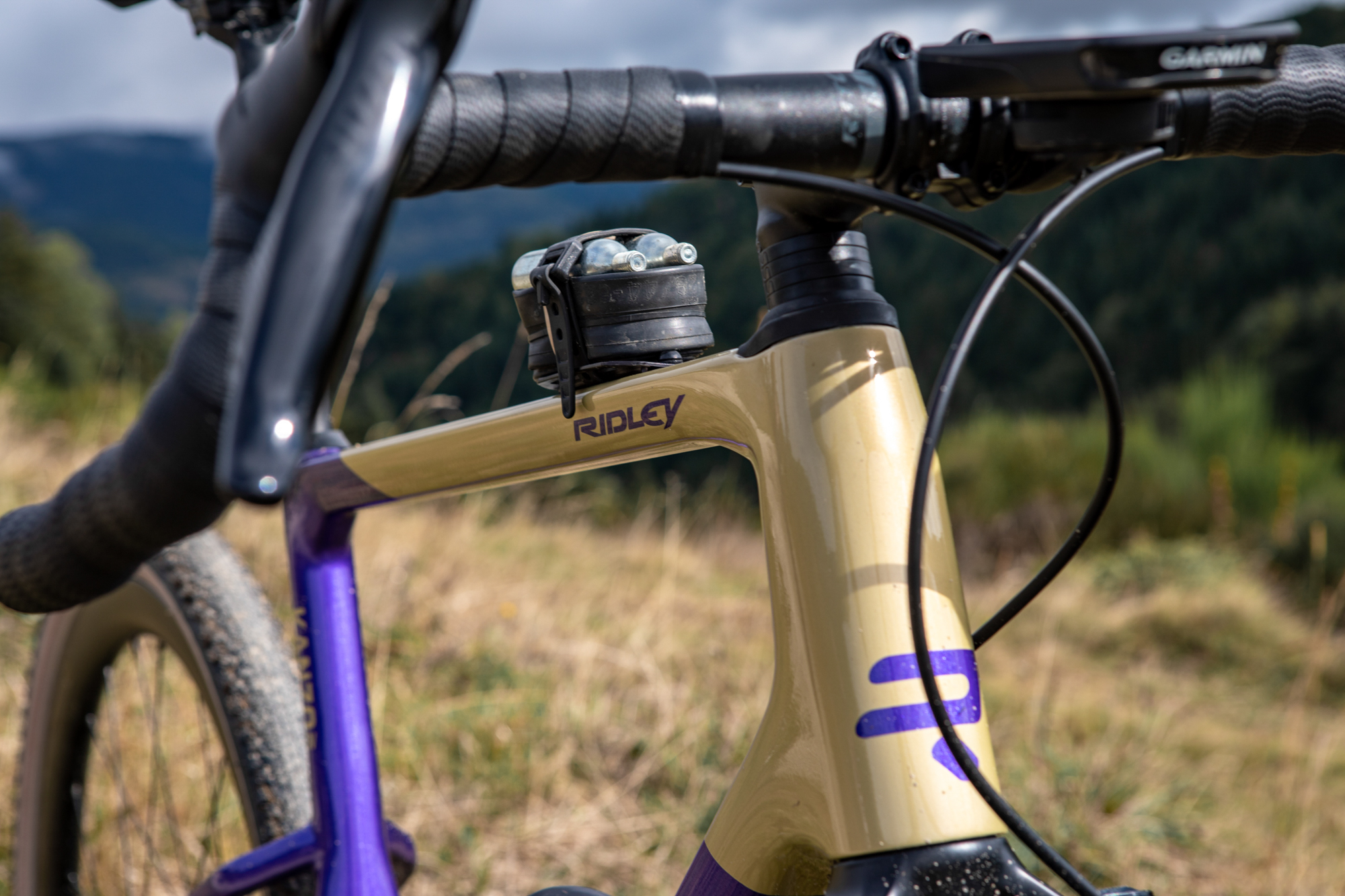 Although aerodynamics take a backseat on a bike designed for adventure, Ridley opted to include F-Steerer technology for the handlebar and stem assembly, which allows all the cables and wires to be hidden. With this decision, they ensure that the cables do not hinder the use of frame or handlebar bags, nor damage the bicycle with friction.