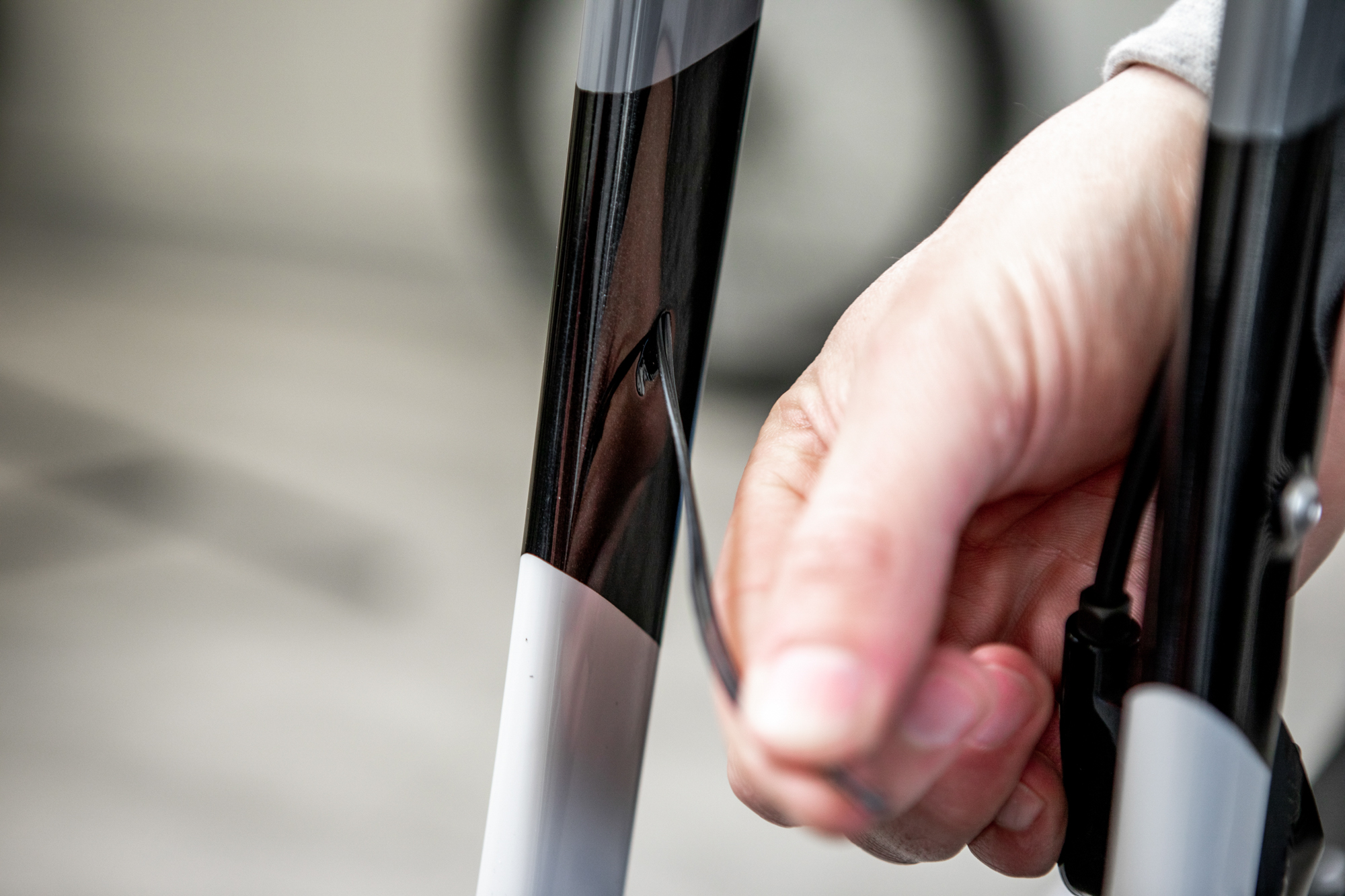 Last but not least, they have redesigned the fork from top to bottom. They have incorporated four mount holes in the lower part to keep the center of gravity low and maintain stability when traveling with weight in the front.