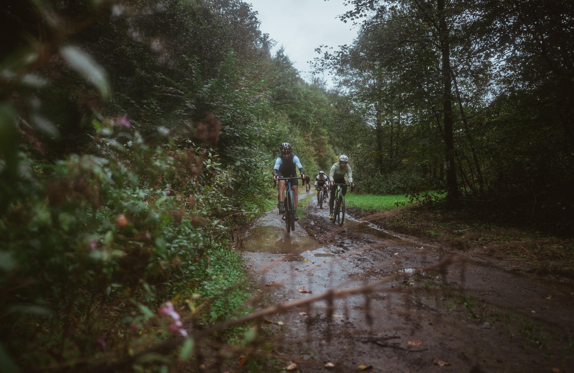 Our first ride with the G-ONE RX was under the conditions it is designed to thrive. We traveled to Schwalbe’s headquarters near Cologne, Germany, and after a first day in which several Schwalbe employees guided us along their new facilities and explained to us what it takes to produce a tire, we tested the new product on a muddy loop. The tire width for the day was 45 mm, and the tire pressure was set by Schwalbe based on a questionnaire we filled out beforehand. In our case, we were riding 1.8 bars in the front and 2.0 in the back.