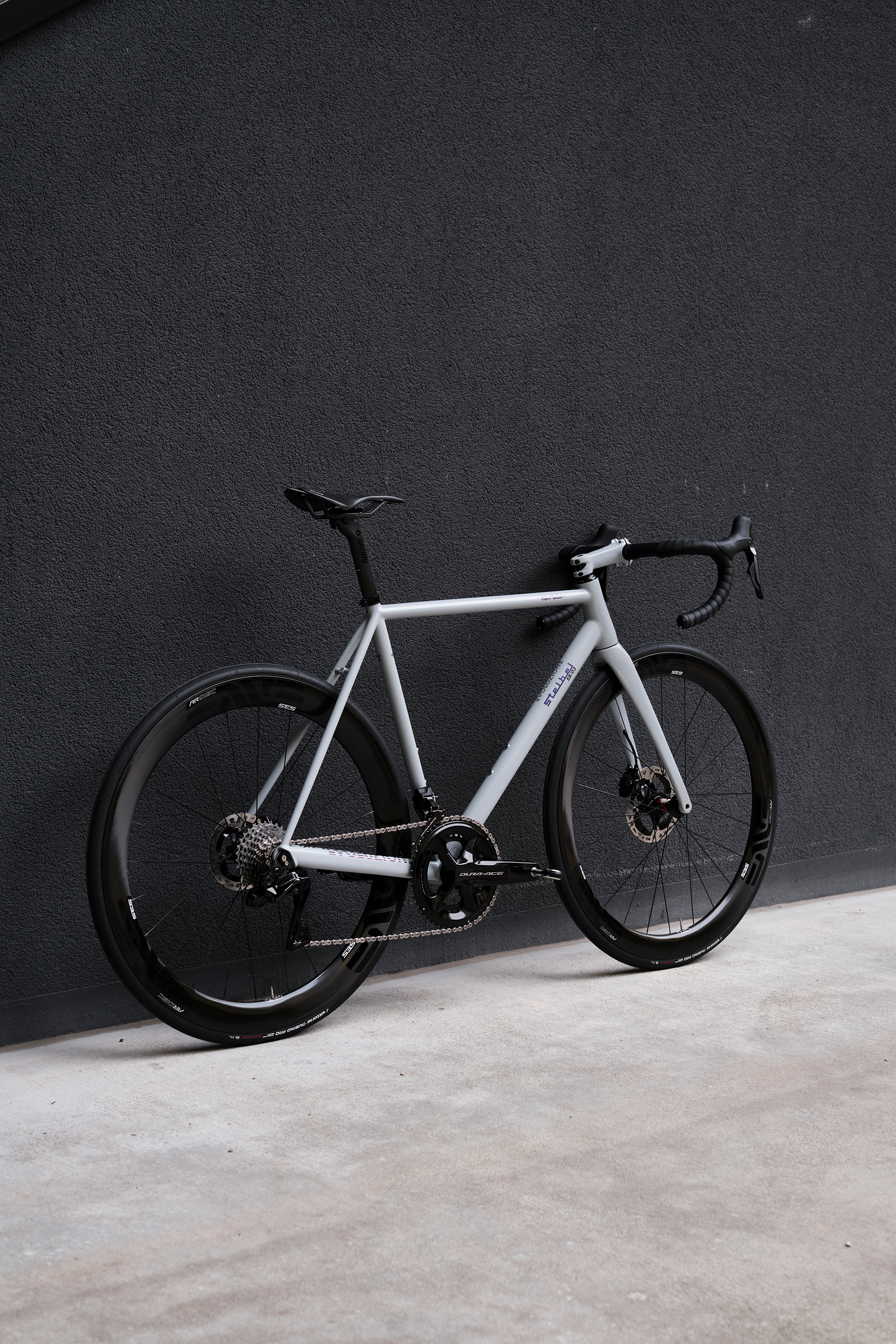 Stelbel is an Italian brand that has maintained the essence of its founder Stelio Belletti in producing custom steel frames but always looking forward to the future. A clear example is the presence of lightweight carbon wheels and cockpits, electronic shifters, or discs brakes in their builts, which result in outstanding racing bicycles.
