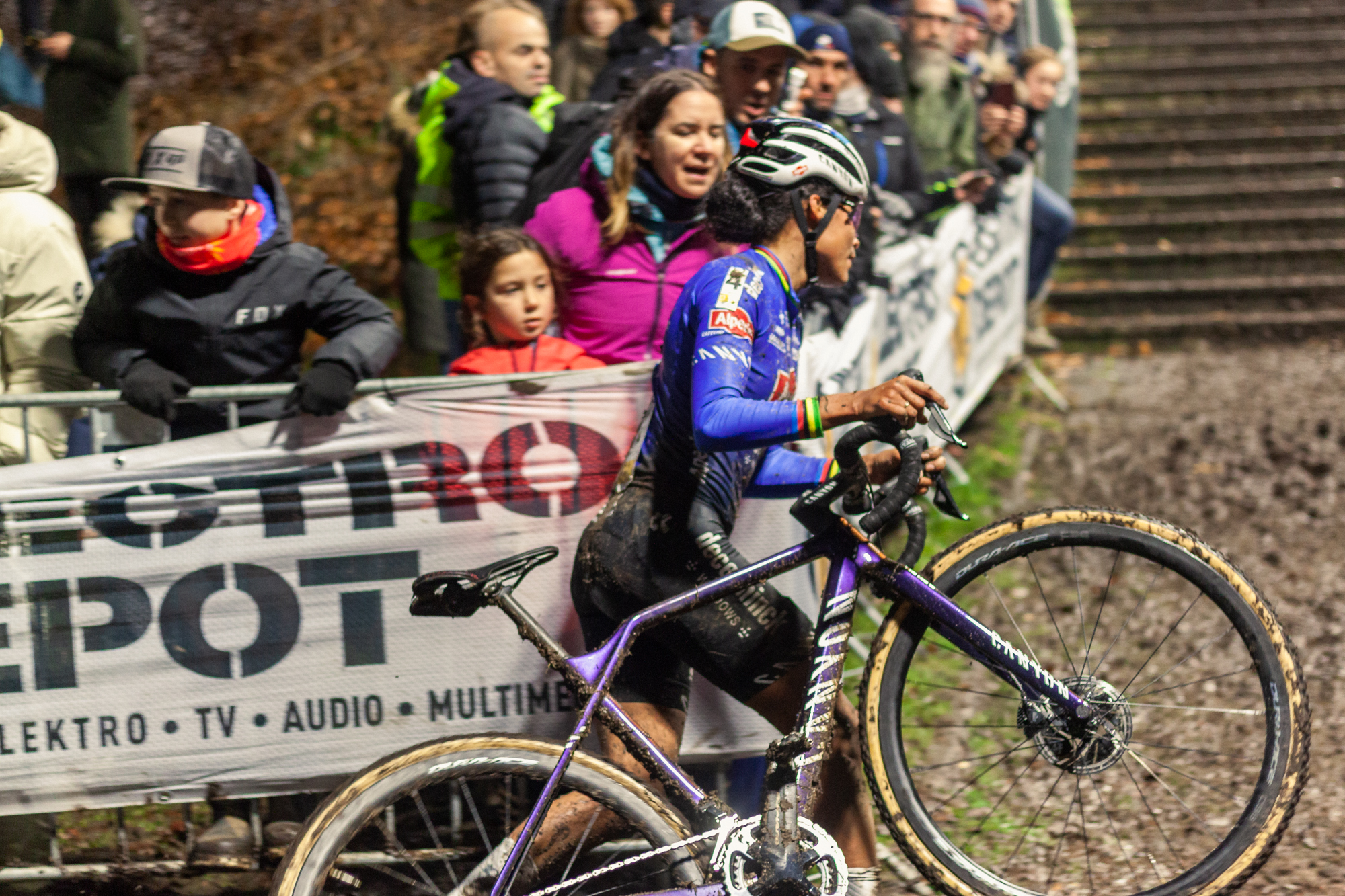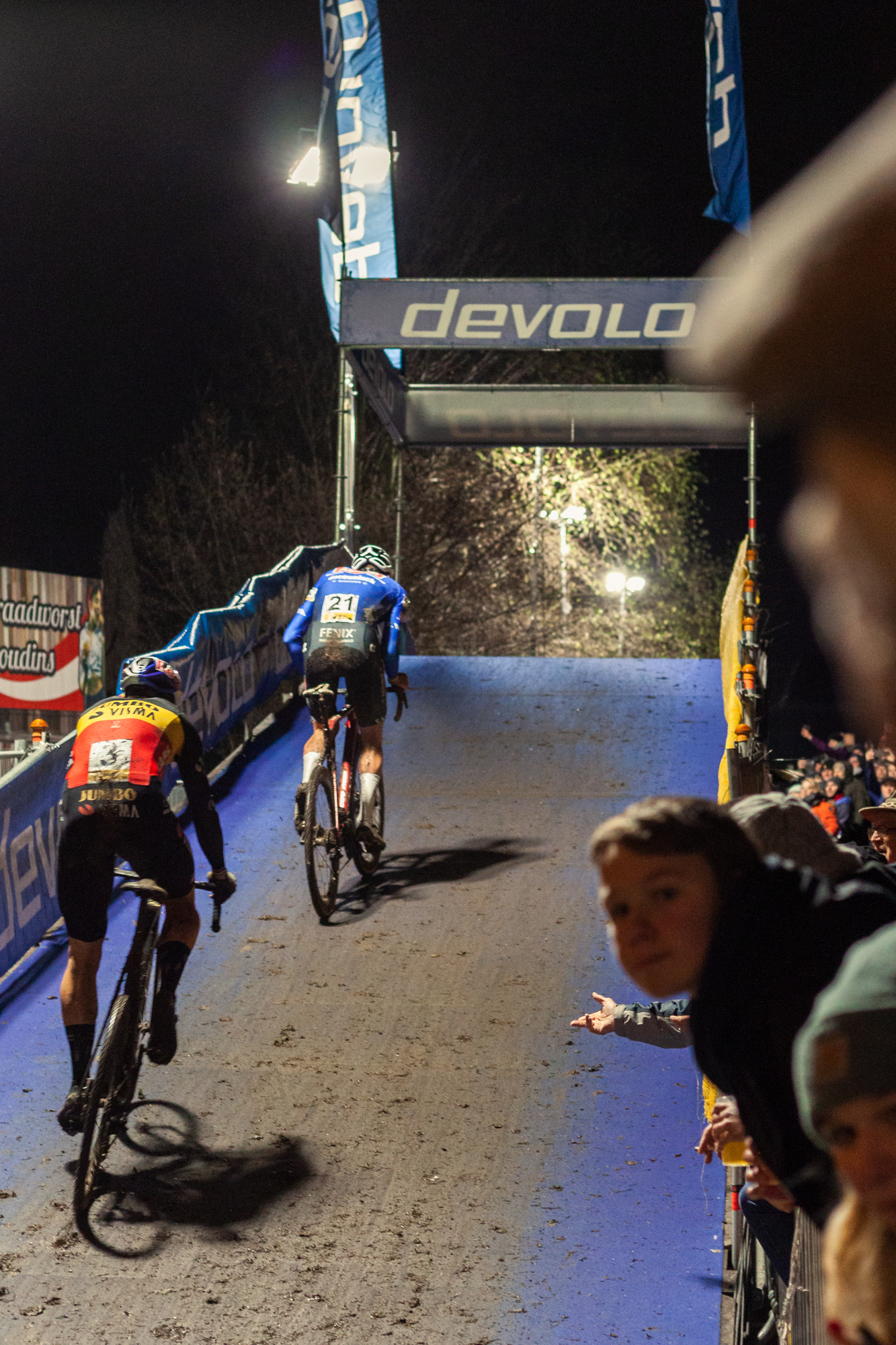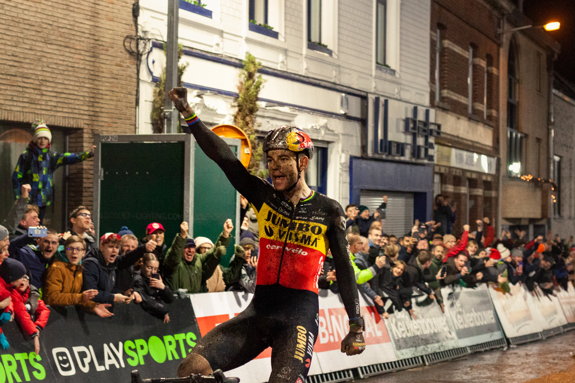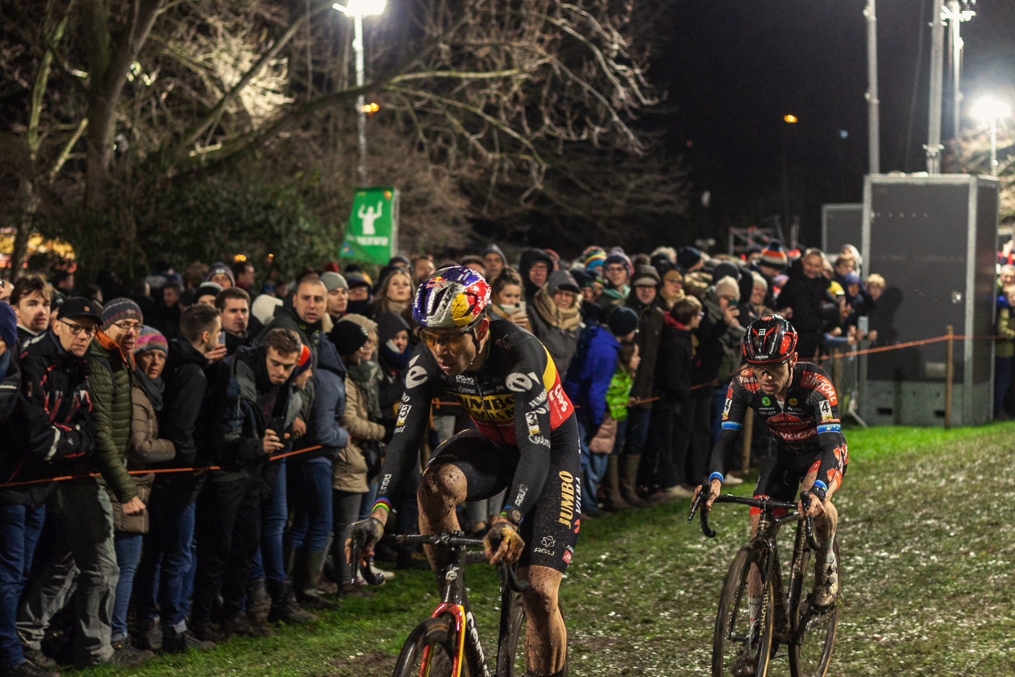 This race dynamic delivered exciting moments from start to finish, which delighted the 20.000 spectators that gathered in Diegem, a town just outside Brussels, for this nocturne race. The outcome was also one to be remembered, with Wout Van Aert winning this race after a hectic last lap which saw him and Pidcock exchange positions multiple times. A minor mistake by the British in the second to last turn ended up being decisive for the win.