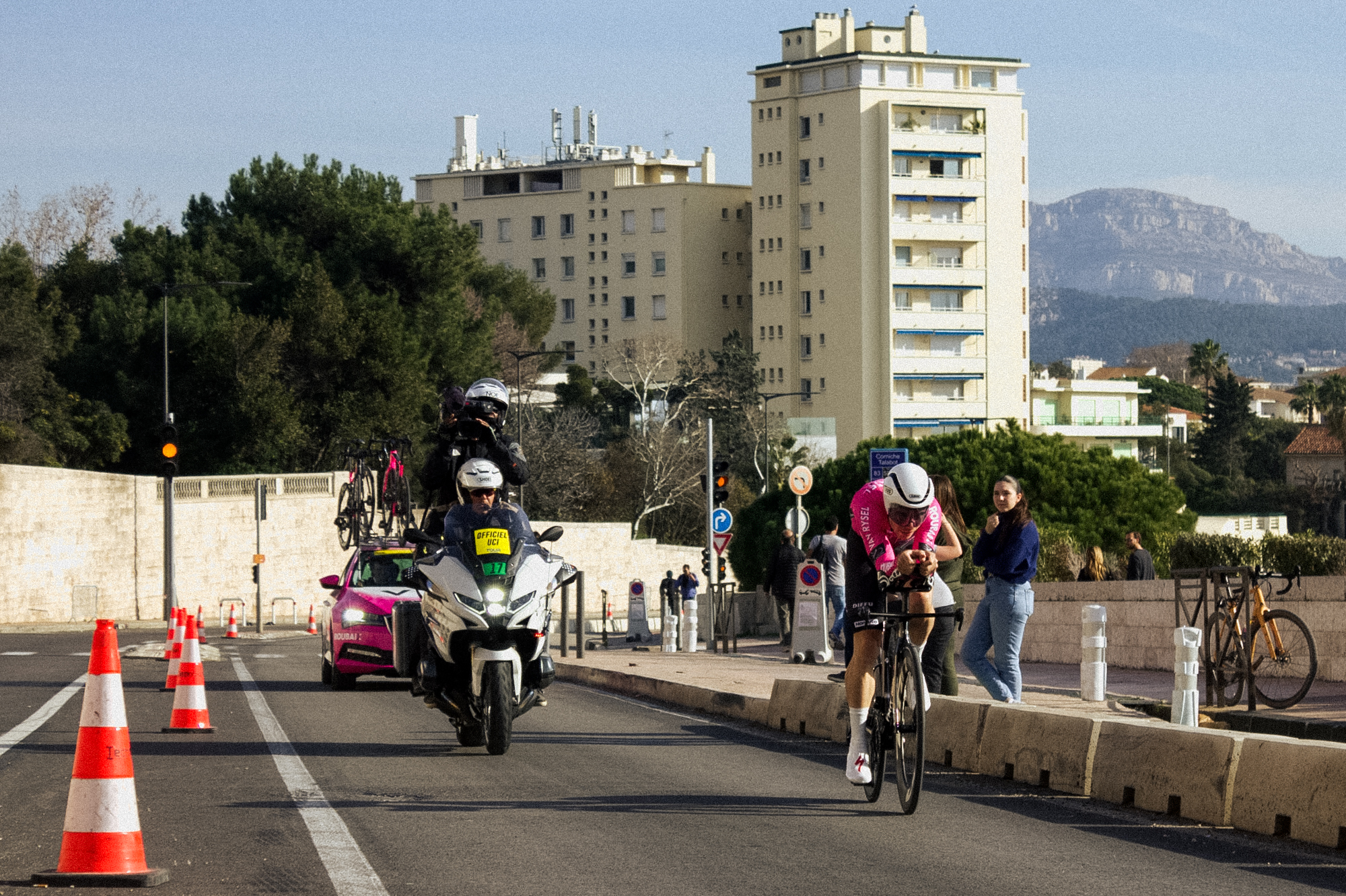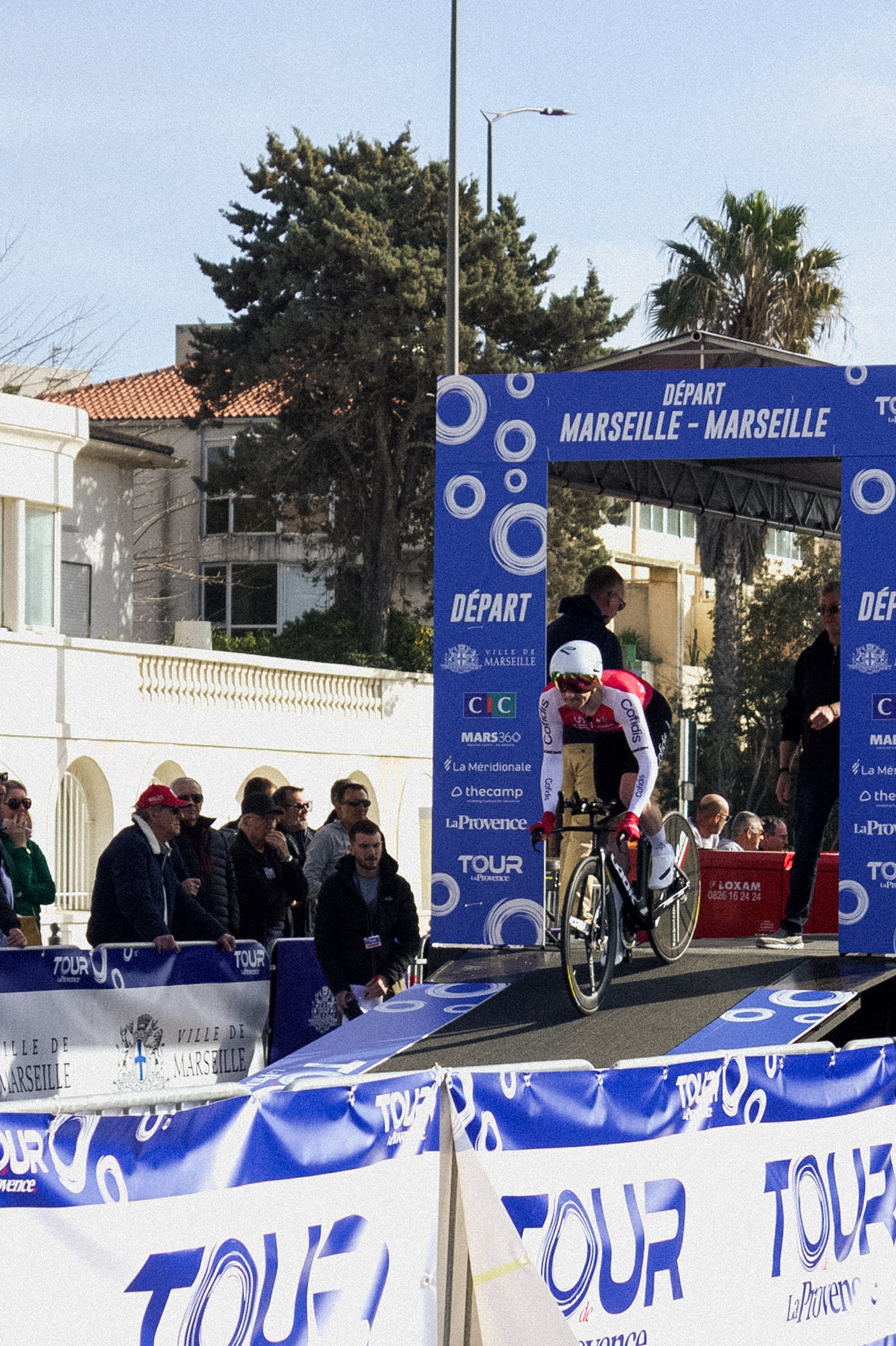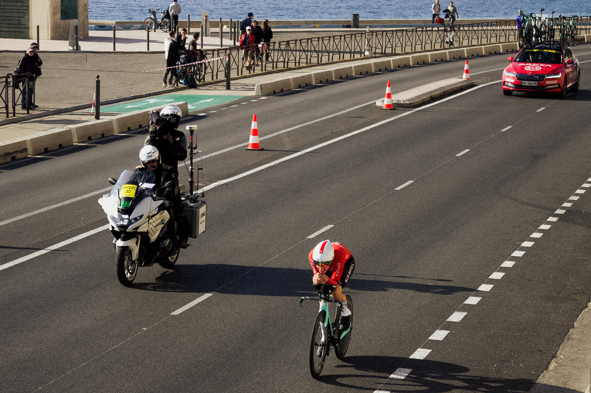 An individual prologue time trial in the coastal city of Marseille would mark the starting point of the race. With UCI WorldTeams among other minor ProTeams and Continental ones, all eyes were fixed on the former world champion Mads Pedersen. He had just won the Étoile de Bessèges the week before and he surely was in great shape. Nonetheless, warming up in the teams’ area, we saw other big names like Sam Bennett or Bruno Armirail.