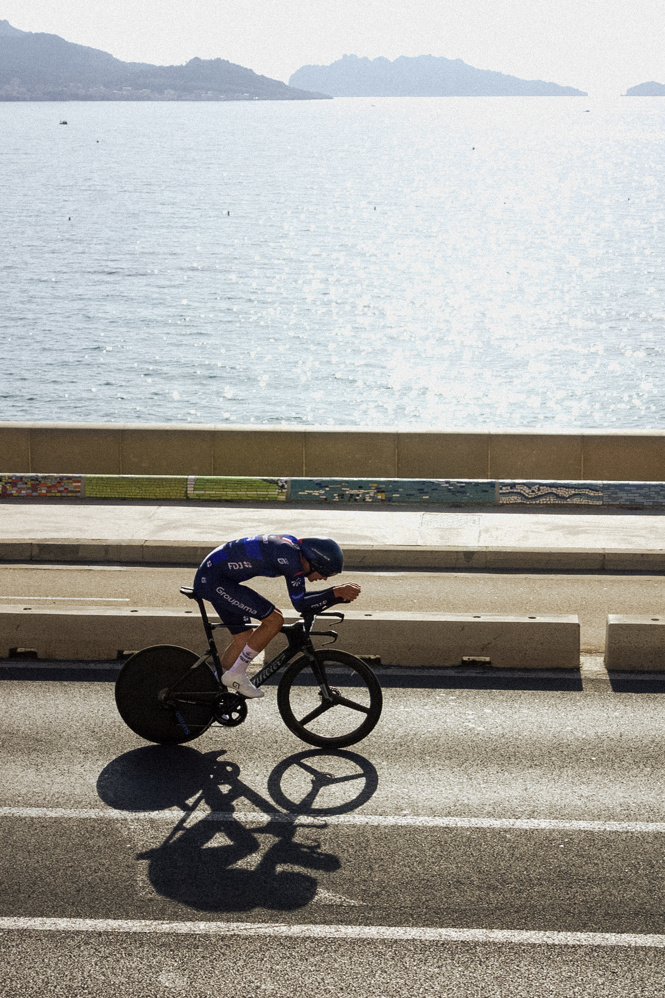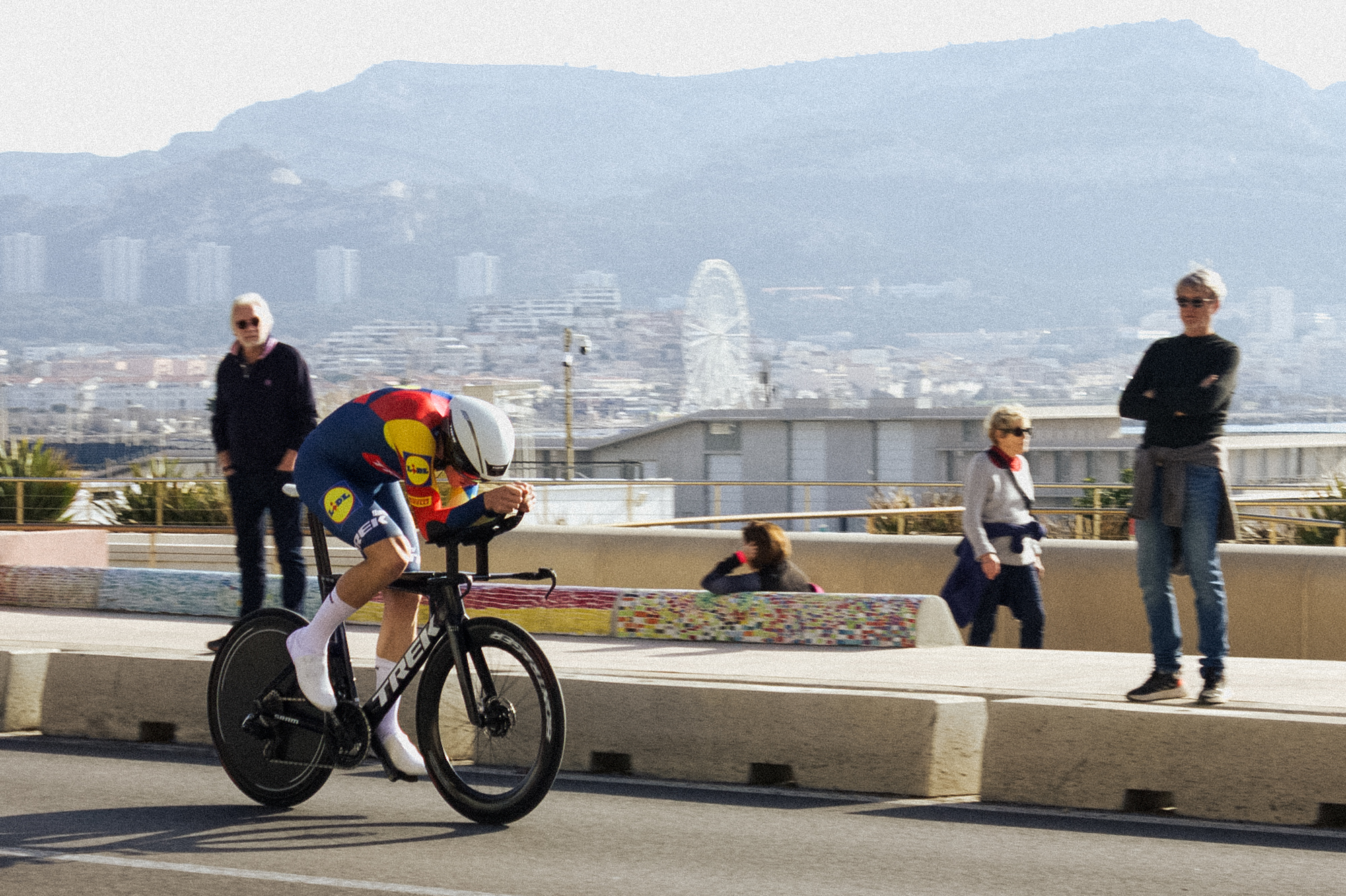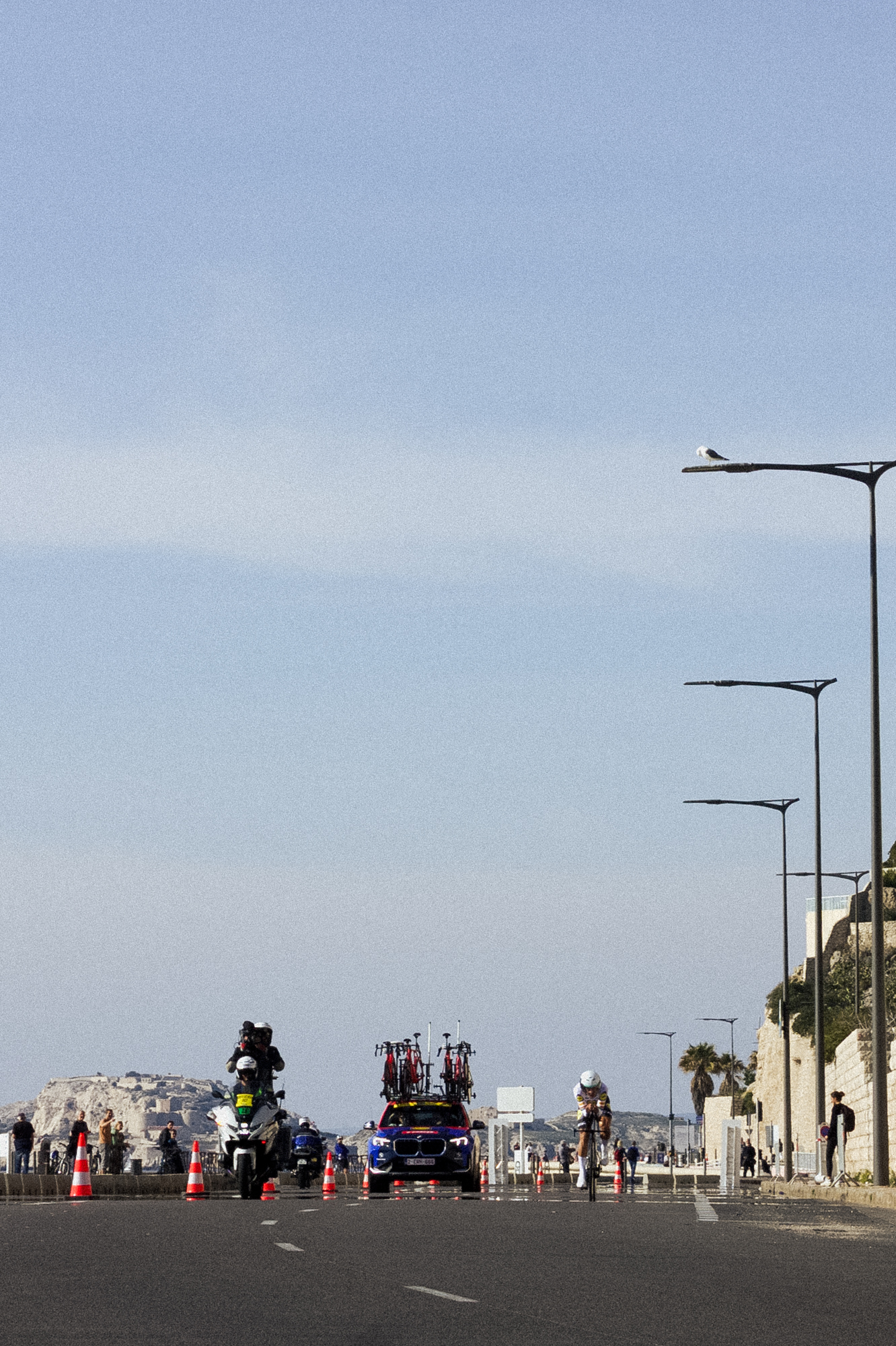 An individual prologue time trial in the coastal city of Marseille would mark the starting point of the race. With UCI WorldTeams among other minor ProTeams and Continental ones, all eyes were fixed on the former world champion Mads Pedersen. He had just won the Étoile de Bessèges the week before and he surely was in great shape. Nonetheless, warming up in the teams’ area, we saw other big names like Sam Bennett or Bruno Armirail.